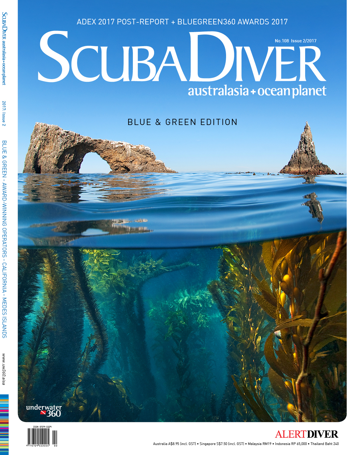 Check out Scuba Diver AustraliaAsia + Oceanplanet “Blue Green Edition” Issue 2/2017. The issue itself is dedicated to conservation and honours the winners of the Bluegreen360 Awards 2017, which is presented to those businesses and individuals committed to eco-friendly practices and marine conservation.