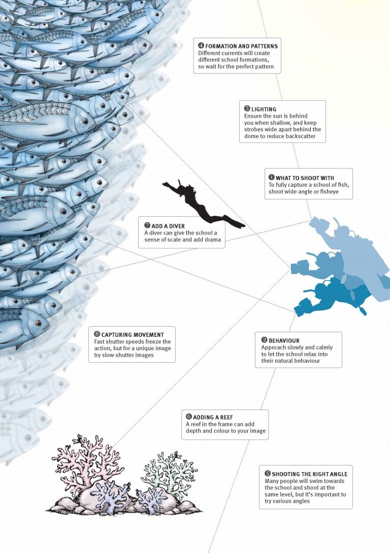 Schooling fish can range from a tightly packed group of glassfish to an enormous school of barracuda in their thousands, so there are many things to consider when approaching this subject. One thing that is normally consistent is that schools of fish generally look good when facing the same direction. Nobody likes a messy looking school.