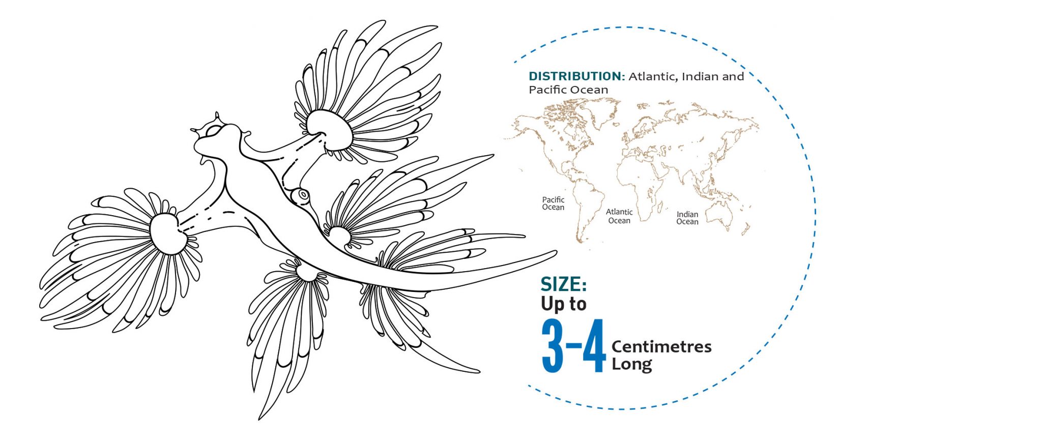2 The blue dragon floats upside down for camouflage: Its blue side faces upwards to blend with the blue water, while the downwards facing silver side blends in with the ocean’s surface