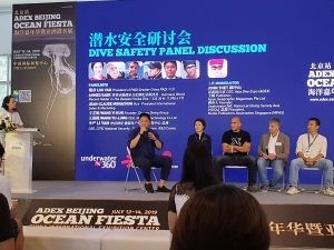 The Dive Safety Panel Discussion was moderated by John Thet, CEO of ADEX. Panel includes Lou Yan, President of PADI Greater Chna, Ahmed Gabr, Guinness World Record Holder in the Deepest Scuba Dive of 332.35m, Jean Claude Monachon, vice president of international sales & marketing of SSI and Wang Yi Kun, founder of Dragon Diving Group. The topics include how to reduce dive risks, and organisations that have safety standards systems.