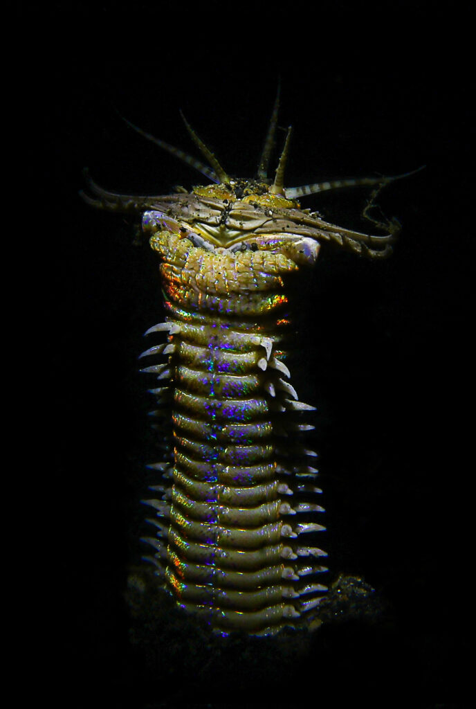 This glittering ocean terror can reach up to three metres in length, and has teeth so sharp it can chop fish in half with its retractable jaws. It also injects its victims with a toxin to make them easier to digest.