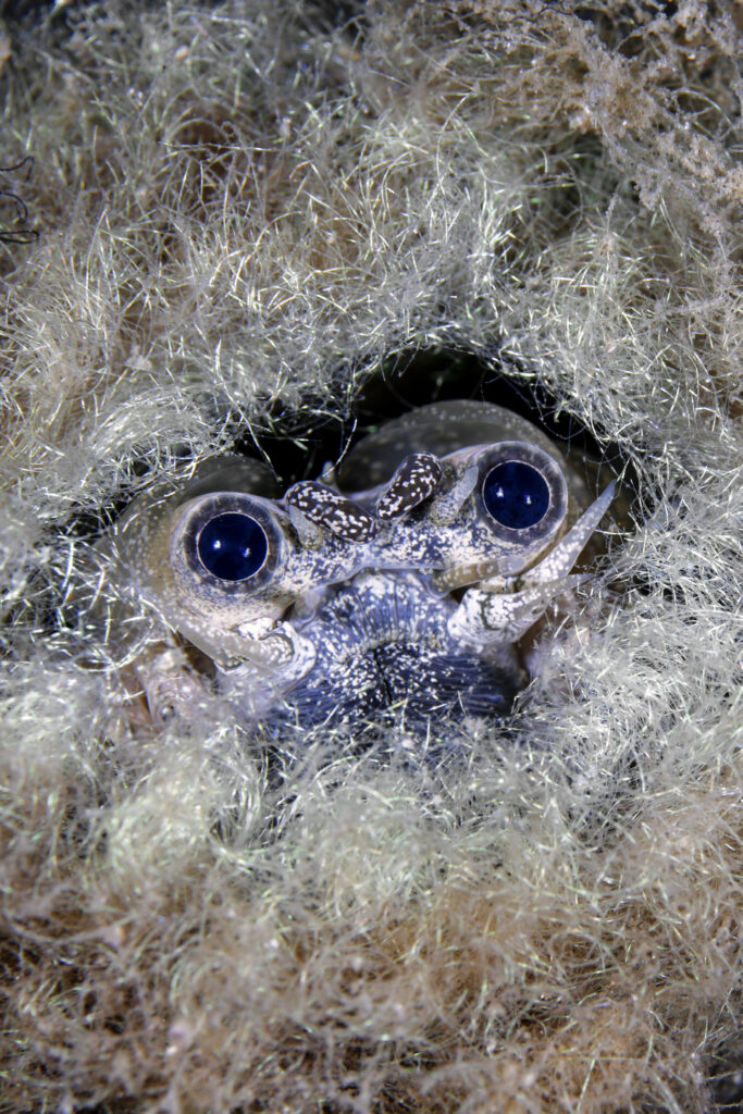 Highly elusive, tiny (about 3mm eye to eye) and terrified of the light, this specimen was captured with very low red light and a huge dose of patience.