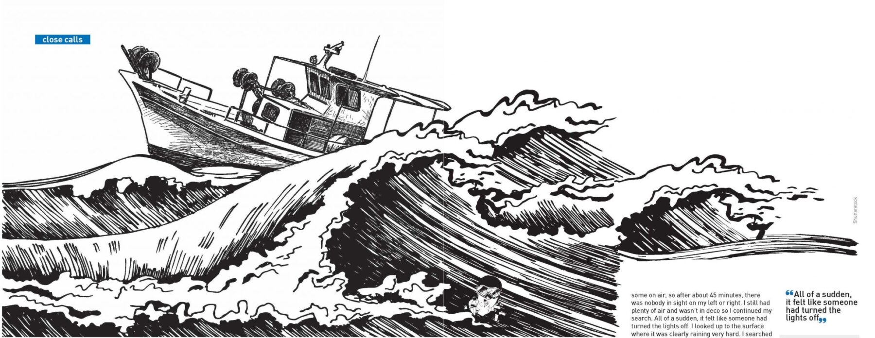 This diver had a close call, learned a valuable lesson and lived to dive another day. Staying calm during her ascent, staying near her buddy and inflating her BCD at the surface were all essential elements in preventing a dive incident.