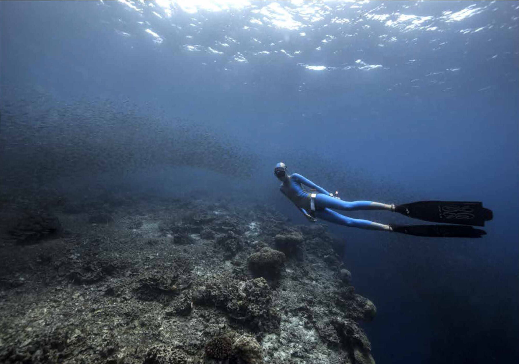 LET ME TAKE YOU on my last perfect freedive. I am about 100 metres from the reef edge, in about 20 metres of water and I am floating on the surface looking at colourful coral reefs and abundant baitfish. The visibility underwater is approximately 30 metres, there is a slight current and the temperature is a comfortable 26 degrees Celsius.