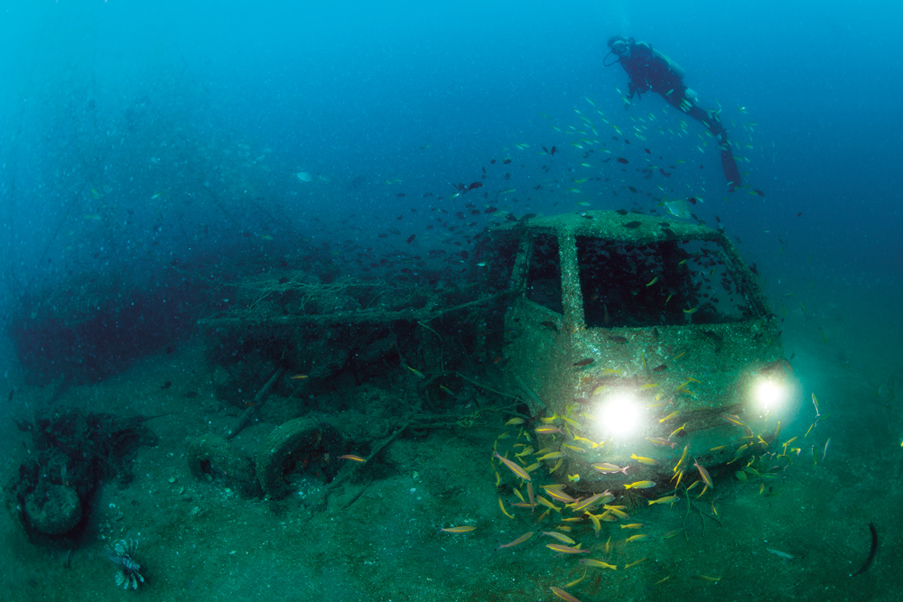 Taiwan’s Green Island is an amazing dive destination with thriving critter colonies and tropical reefs. With over 30 metres of visibility, the water is usually warm and mostly free from currents. Strangely, the USS Leonard F. Mason, which lies at 40 metres, often has very strong currents and is rarely visited. After 30 years of service, it was sold to the government of the Republic of China and thereafter sunk in 2003 to create an artificial reef. Now, the wreck is home to big marbled whiprays and schools of snappers and jacks.