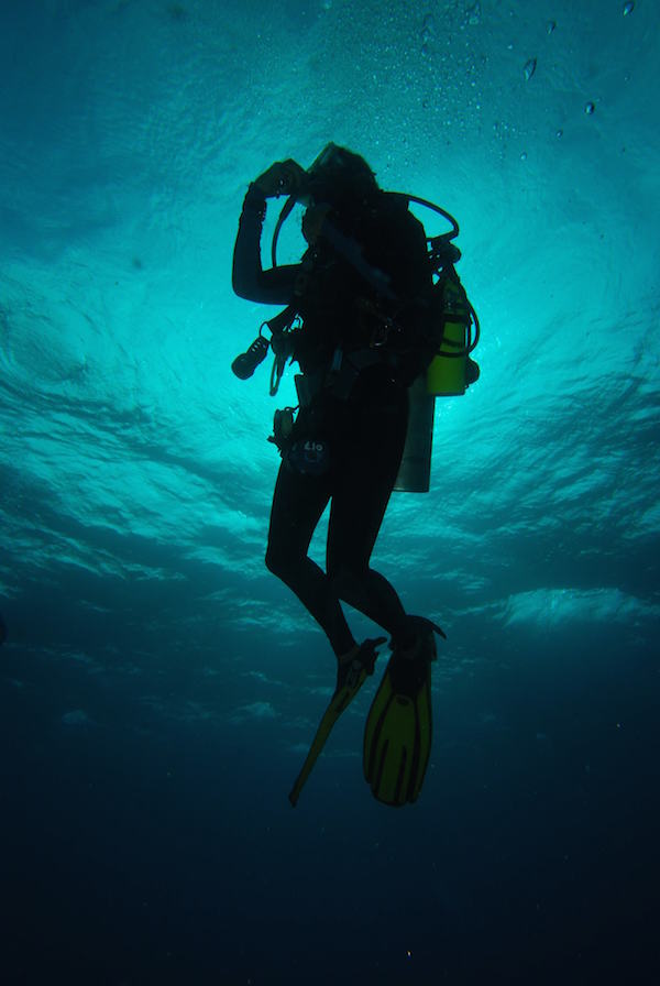 A diver calms himself as he equalises whilst descending © Shutterstock