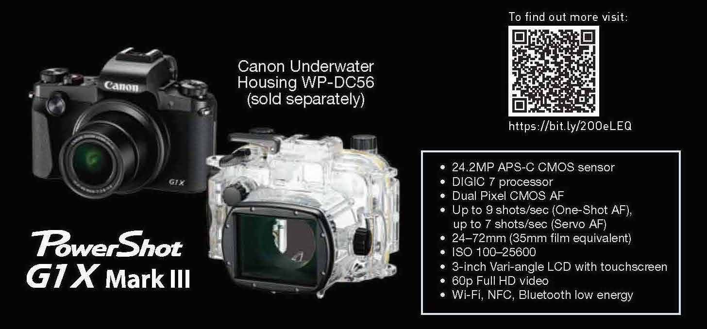 While I love diving around the world, carrying all my gear has always been the biggest headache. But with the small and lightweight PowerShot G1 X Mark III in Canon’s compact dedicated WP-DC56 underwater housing, my life has been made much easier. This impressive camera is definitely a boon for both beginners and enthusiasts, and it makes an excellent backup for the more advanced underwater shooter.