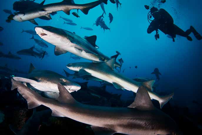 The dives are relatively short, as the site flattens at around 20 metres, so you have to keep a good eye on your no-decompression limit. Spending the day doing two 25-minute dives with these sharks was just perfect.