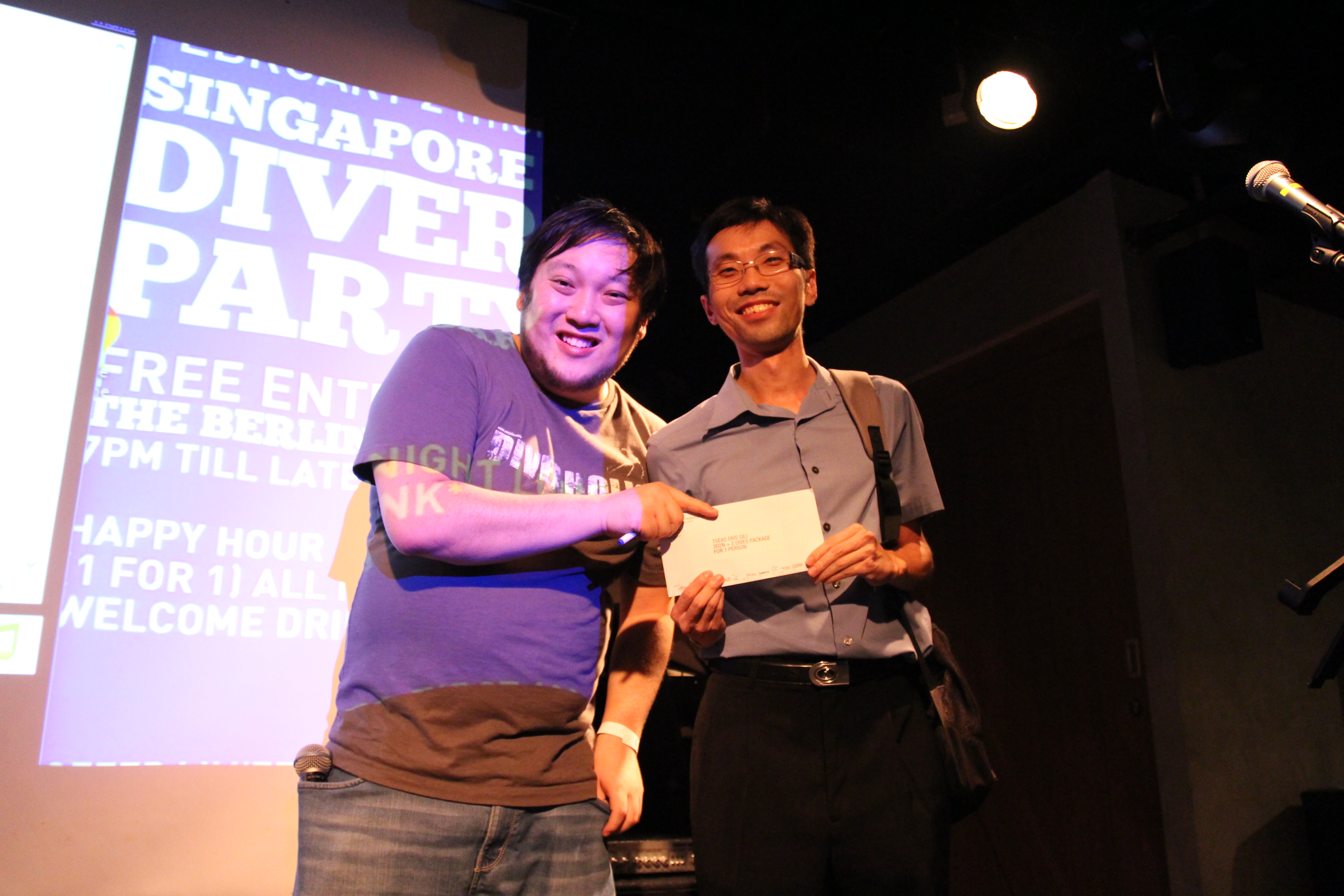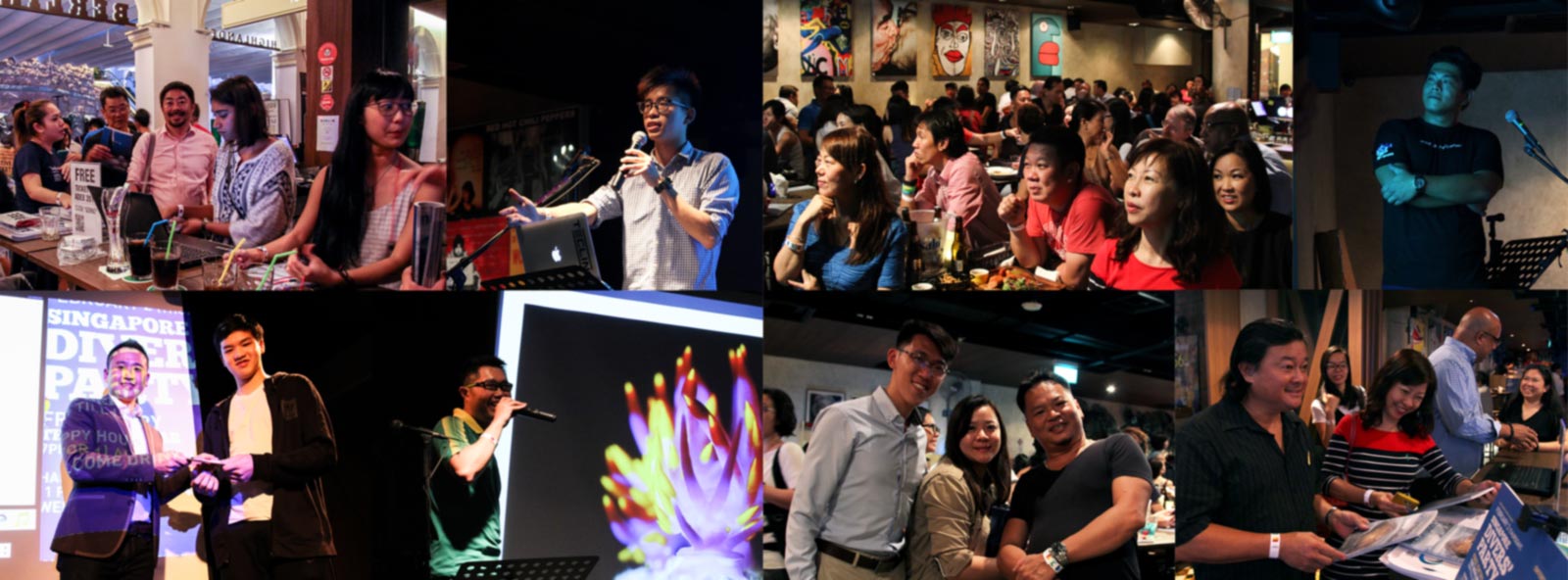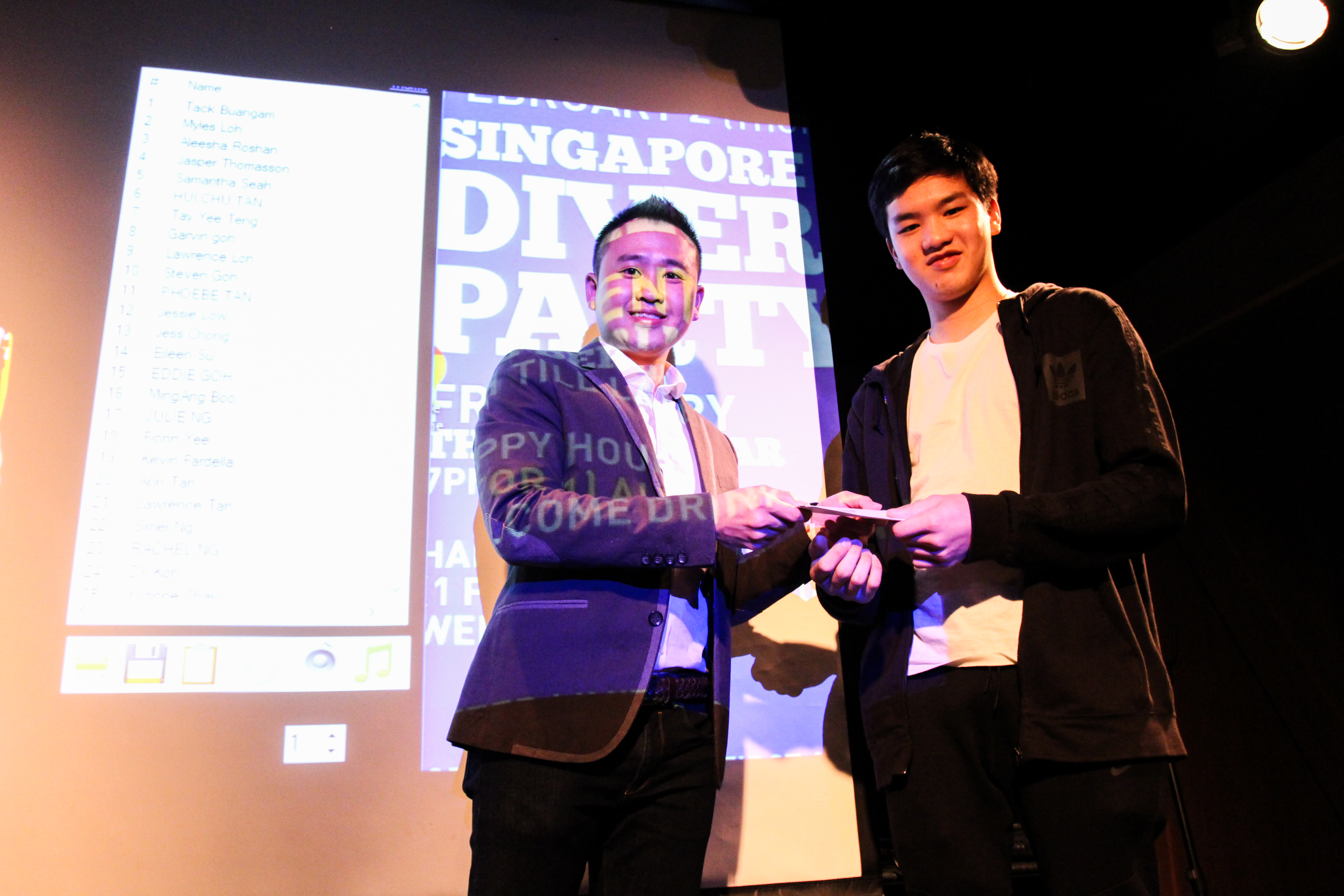 Julynn’s presentation was followed by the first lucky draw announcement, with winners snagging UW3some vintage mugs and Diveaholic T-shirts. Next came the First Asian Team Underwater Rugby Singapore (F.A.T. UWR), with club president Joel Chan and club captain Stanley Ng representing the sport. The audience got the chance to see what exactly the underwater sport was all about, with a video demonstrating the athletic ability and skill required to compete.