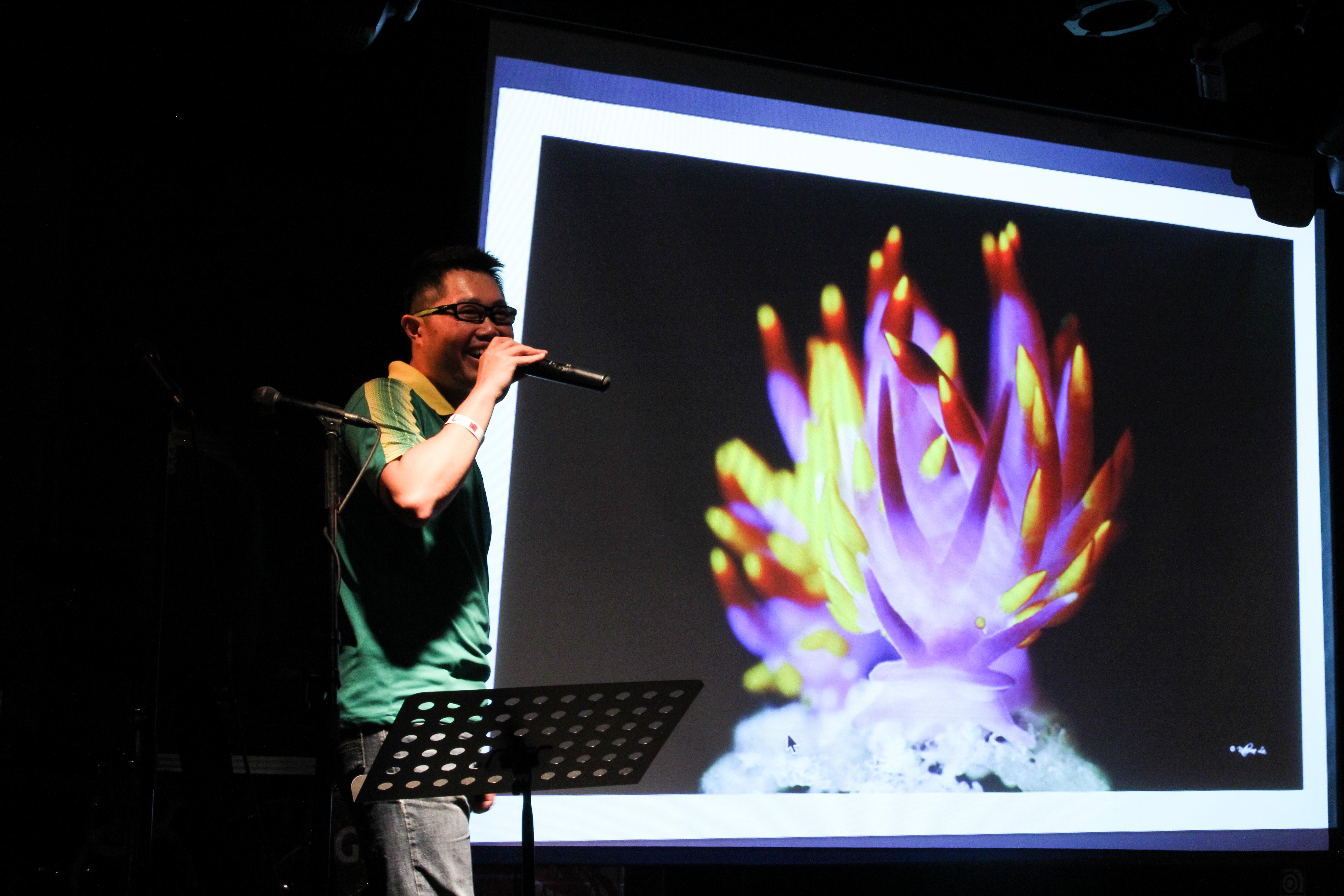 Next up, award-winning photographer for marine behaviour, Julynn Khor, showcased some of her fantastic images, with unique angles on some of Southeast Asia’s more bizarre critters. The audience was wowed by Julynn’s talent for capturing beautiful compositions of minute marine animals – creatures many of us would miss on a dive.