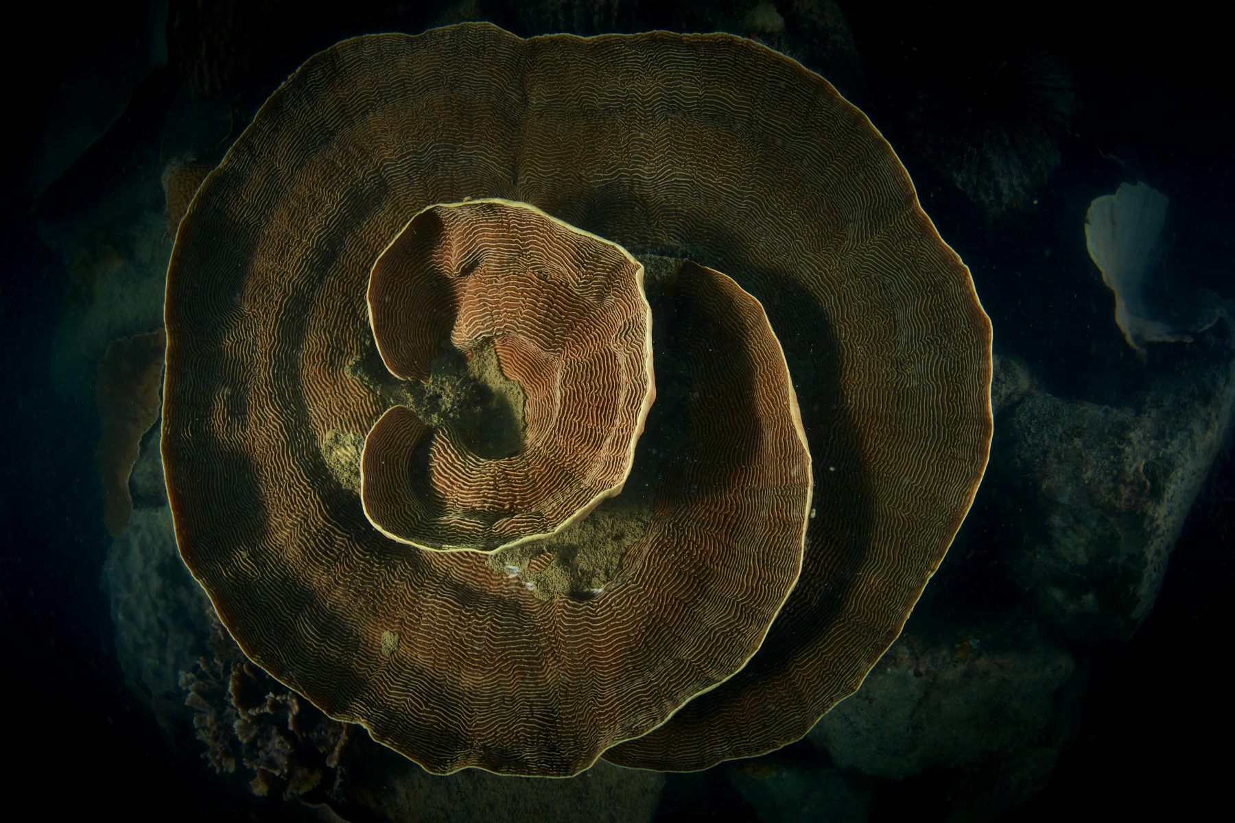 I wasn’t sure which direction we headed towards, but things got better halfway through the dive. As I was getting used to the monotony of being surrounded by nothing but silt and the occasional floating clump of seaweed making its way towards my face, we saw a tinge of orange peeking through the cloud of silt. As we made our way towards it, we witnessed a performance of the soft, orange corals swaying and dancing to the beat of the current. While being entranced by the gentle movement of the corals, a sudden current surged and kicked up the slit around it, and exposed what looked like a plastic bottle covered in algae and other marine debris.