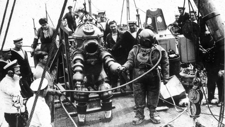 Other European colonial powers such as the Dutch and Germans also had interests in the area, but so far we do not have much evidence of their diving equipment being used regularly in the region. During the early 20th century the US began exerting influence in Asia, and their troops saw military action around Japan, Korea, and Vietnam. The helmet the Americans used was the U.S. Navy Mark V, which was in service from 1916 through to the early 1980s.