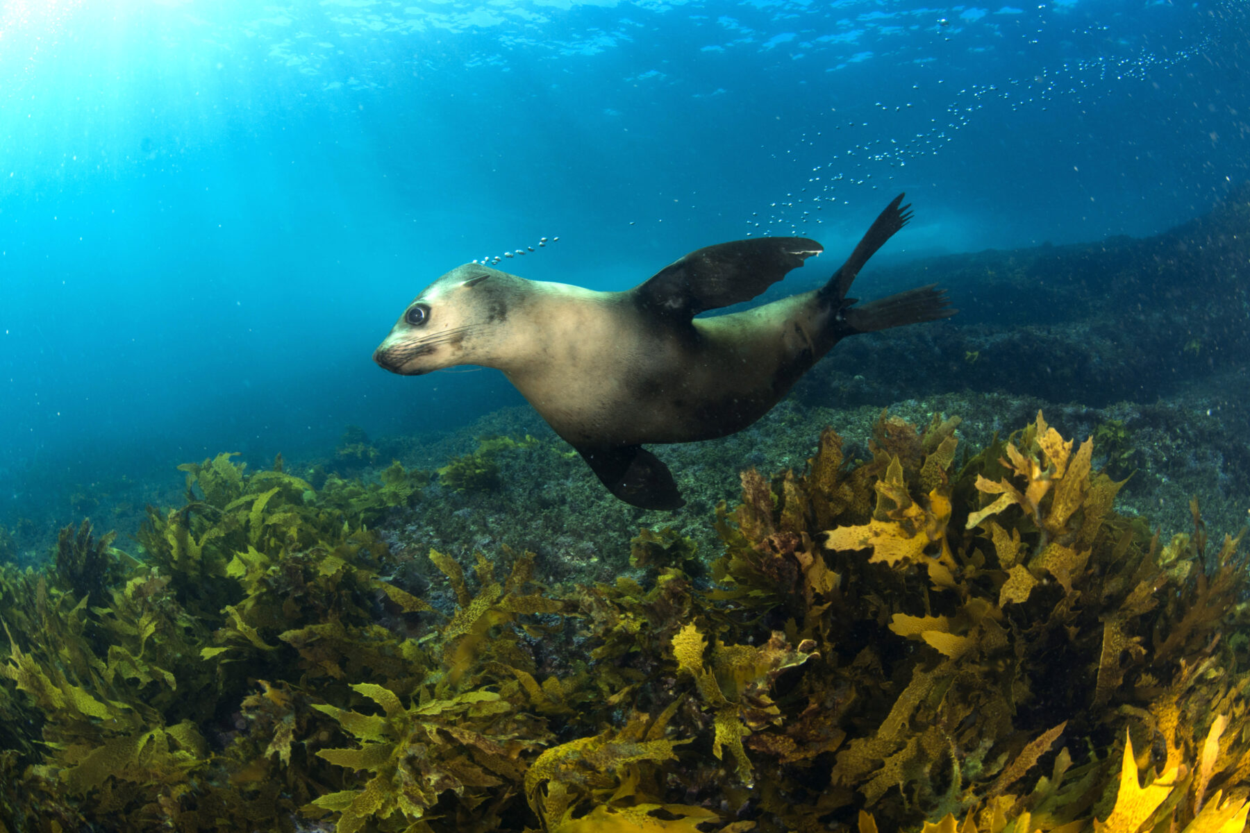 On the reef just offshore, the blue East Australian Current brings nutrients, baitfish and larger predatory fish and squid to the waters immediately around the island, which creates a feast for resident Australian and New Zealand fur seals. Endless time can be spent watching the playful antics of the seals in the blue shallow waters. During the summer months grey nurse sharks can also be regularly encountered off the northern end of the island; it was quite common to encounter a group of 10 during a dive this summer. Other sites around the island include a bubble cave and the amazing Aughinish Rock, located in current-swept waters to the south of the island.