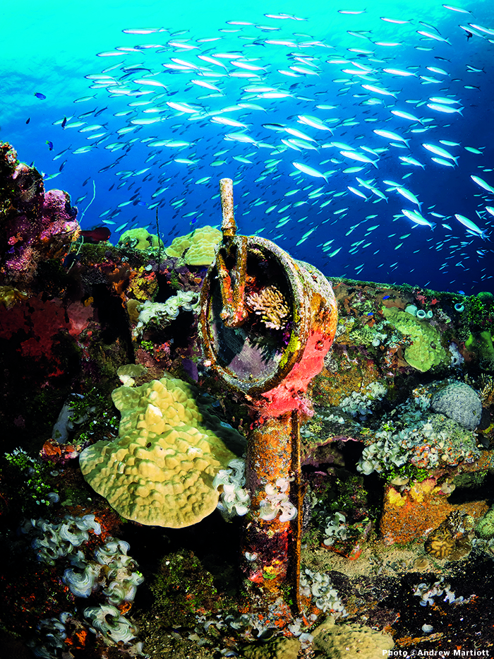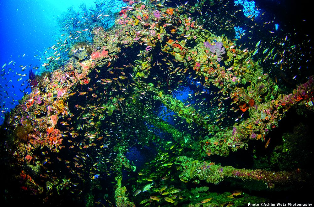 Hailed as one of the world’s most dangerous wrecks, the Hardeep was used by the Japanese in World War II to carry freight before it sank in 1941. The strong currents make it a challenging wreck to dive, but at the right time, this wreck offers one of the most exciting wreck dives in Asia. It is covered in corals and macro life with side portholes forming an overarching roof for divers to swim under while penetrating the wide open hull, letting in streams of light that evoke a mysterious atmosphere.