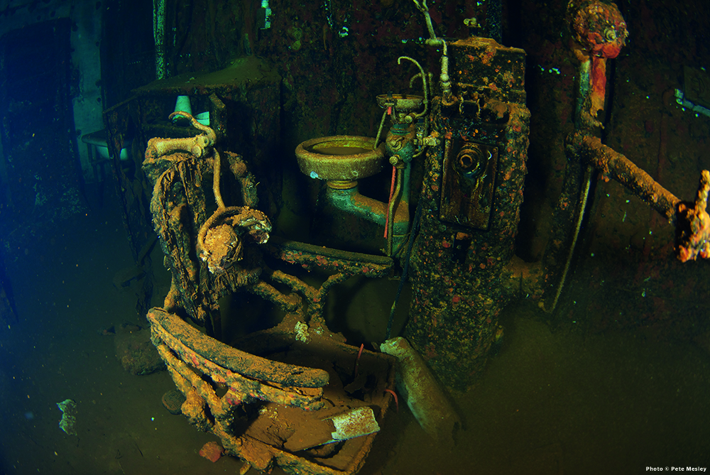 The Saratoga was a 40,000-ton, 268-metre-long aircraft carrier. Sinking as a result of nuclear testing, her interior is incredibly vast: seven decks of passageways, rooms, and galleys for divers to get lost in. The highlight of the wreck is the dentist’s office: Three perfectly preserved dentist chairs sit in the room, rinse bowls, and even headphones for the patients.